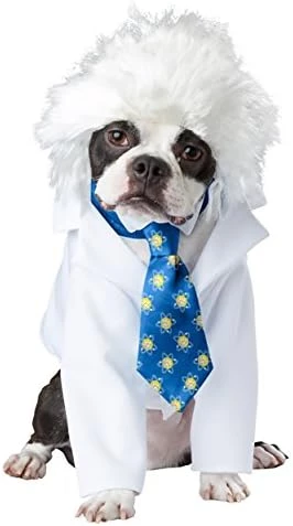 - Lab coat has sleeves for dog’s front paws, buttons around chest
