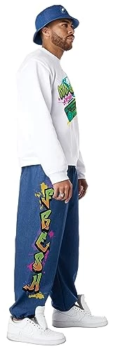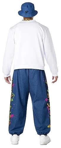 Be old enough to, or pretend to relive this vibrant 90’s street wear style. The 90’s Hip Hop costume comes with top with print “Old Skool”, pants with print “Fresh and Fly” and hat. Not included: jewelry (necklaces, ring), shoes.