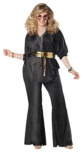 Got this for a 70s themed NYE party. I’m a solid 16/18 so ordered the 3x & 2x not knowing how sizing was. The 2x pants were bigger than the 3x pants but the top on 2x fit better so went with that. I probably should have gotten the 1x but it wouldn’t have arrived in time. The pants were very long so I ended up just cutting off the bottom to fit the shoes I wore & used safety pins to pin the waist to fit.My biggest complaint with this was the glitter. I’m not kidding when I say it looked like I just shook a bottle of glitter around my bathroom/closet trying this on. I literally tried the second one on in the shower & when I got dressed at the hotel I got dressed in the shower & just walked out the door to minimize glitter in the room. We used a sheet in my car too minimize glitter in my car but it’s still going to be there u til I can deep clean it. Had I had more time &/or had there been more 70s plus size costumes available, I would have chosen something else.