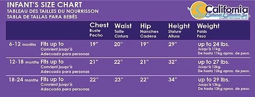Overall, this is a cute costume. My 2-year old is 26lbs and the 18-24 month size fits her well. The hat, however, is pretty small. It will work, but I had to add a chin strap to make sure it stays on. Her head circumference is on the small side her her age, so I’m a little disappointed the hat doesn’t fit her better.