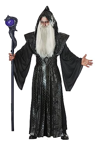 - Have a wise, mysterious look with this Dark Wizard Adult Costume. Costume includes robe, cloack with hood, and belt. Does not include staff, pants or shoes.