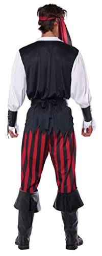 Costume includes: shirt, pants, head tie, boot tops, belt, wrist cuffs