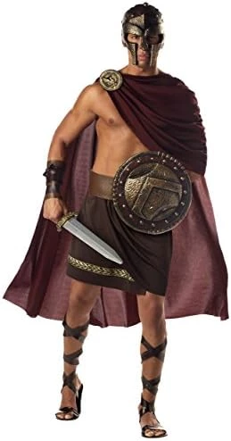 This costume is absolutely hilarious. I love it! Honestly, it’s exactly what I wanted. It arrived a day earlier than expected, and in plenty of time for an insane Halloween party next week (i’m in college). I’m greek, with a decent athletic-ish physique (i’m a musician…definitely no body builder but I’m comfortable wearing this costume without any worries about looking like i don’t belong in it…I’d say I’m comprable to the guy modeling the costume, if not a little better..something to consider if you’re buying it…it’s very revealing!) and I have a full beard so I instantly thought of being Leonidas for Halloween and this is prime choice for costume. As I tried it on today, it fit perfectly. I ordered a large even though according to the Amazon sizing chart I should’ve been a medium…that’s thanks to a tip from another reviewer to order one size larger than you are. Definitely do that.As I was trying it on piece by piece i couldn’t help but just crack up…it’s hilarious to put on the skirt and the wrist bands, and finally the cape.As it is stated, it does not come with the sword & shield pictured, nor the sandals.It is supposed to come with the Helmet I suppose…but mine did not!!! This is the one complaint I have and the only reason I gave it 4 stars instead of 5.Honestly I don’t care much because I wasn’t going to wear the mask anyway..gotta show off that beard to truly be Leonidas!But it is a drag simply because I thought I was paying for it.Another reviewer didn’t receive the gold medallion that goes on the cape. I’ve got that but not the mask..it seems like this costume is very inconsistent in missing pieces. I’m just glad it’s not missing any major clothing pieces (although I guess one might consider the helmet a major piece, i just don’t for myself…)Note…definitely get a sword. I had an unopened costume sword from back in high school when I bought it to use it in a film class. It works fine for this costume and is much better than the one pictured…glad this costume comes with a belt to go around the skirt (even though it has no real function as an actual belt) because I can stuff the sword in there instead of holding it all night.Overall a great purchase, well worth the $30.EDIT******I found the “helmet” (wrapped up and under the box), let me just say that it is god aweful. Honestly a very ugly piece of plastic that looks nothing like in the photo and i threw out immediately. Therefore, my review stays a 4/5 regardless that the product came with everything.