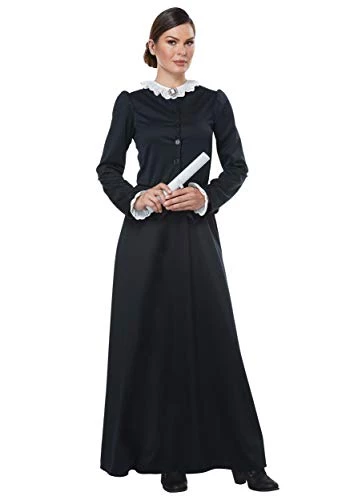 This versatile 19th century costume is perfect for portraying some of America’s most noteworthy women in history. The Susan ribbed anthony/ Harriet Tubman adult costume includes a long black dress that can be customized with a variety of accessories, such as a lace collar, ruffled collar, a pair of lace cuffs, a hair warp and a Cameo pin.